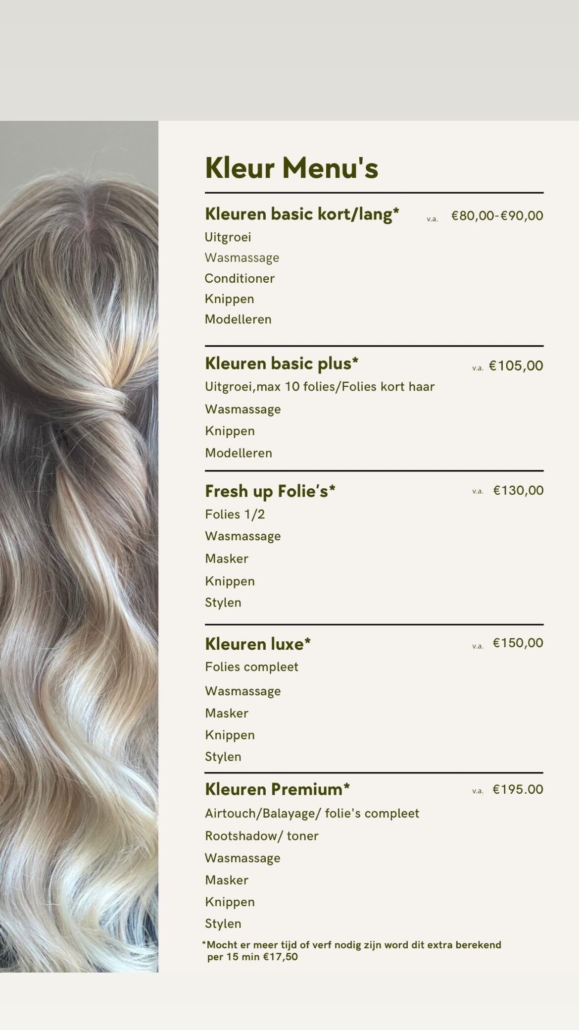 De prijzen voor kleuringen zijn afhankelijk van de tijd die we bezig zijn met de behandeling, aangezien dit per persoon kan variëren.